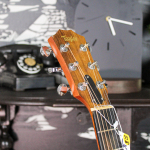tropical mahogany top. The short scale and comfortable neck profile make it an excellent songwriting companion, travel guitar, or couch picker. Even though it’s compact, the Mini projects impressively and responds well to fingerstyle and strumming.