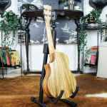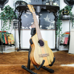 Our Teak Tri-Top Ukulele Series is a striking addition to our line of affordable ukuleles. Made primarily of Teak—a tropical hardwood that has a very soft brown tone with tight, straight grain patterns and striping—the Tri-Top comes together with a triangular strip of mahogany that runs down the center providing a red or orange contrast against the brown. The stain is so natural it looks like the wood is fresh-cut f rom the tree. These ukes also feature a sharp, Florentine Cutaway and an active EQ with built-in tuner. Available in Concert and Tenor models.