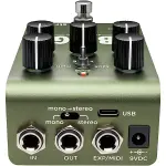 Brig is a triumph of compact design, offering a huge amount of power and flexibility in an elegantly small form factor: Three truly distinct delay voices. Artifact-free tap tempo. Stereo operation. Straightforward responsive controls and expression pedal capability. High-impedance, ultra-low noise discrete Class A JFET stereo input preamp for exceptional touch sensitivity, dynamics and feel. MIDI control for tempo, patch save/recall, and more. Premium components, rugged construction, and a USB jack for controlling the pedal via MIDI from a computer or for performing firmware updates.