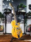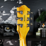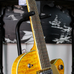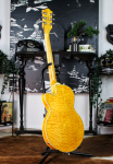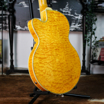 - Slightly smaller 14" single-cutaway quilted maple body with chambered spruce center block