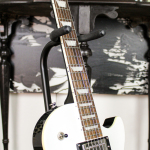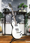This model features a slim neck profile and a straightforward control layout that makes it easy to dial in usable tones quickly. The Pearl White Metallic finish gives it a clean, modern look that stands out without being flashy, and the overall feel is balanced and comfortable whether you’re playing seated or standing.