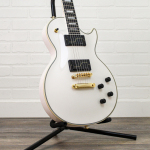 Up for sale is a Preowned 2022 Epiphone Matt Heafy Les Paul Custom Origins Electric Guitar in Bone White, complete with the original hardshell case. This model blends the classic Les Paul Custom look with modern appointments, resulting in a guitar that feels familiar while offering a bit more flexibility and comfort than a traditional Custom. It’s a solid, well-balanced instrument that works just as well for heavy tones as it does for cleaner playing.