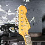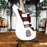 This guitar features the traditional Jazzmaster setup with a comfortable neck profile and an easy, familiar control layout. The Olympic White finish with the red tortoise pickguard looks right at home on this model and gives it a clean, classic appearance. Overall, it feels like a guitar that’s ready to be played!